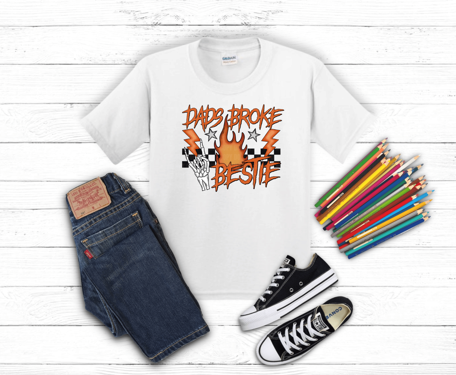 Dads Broke Bestie by Griffin Expressions is a fun direct to film transfer that can be placed on a variety of clothing!