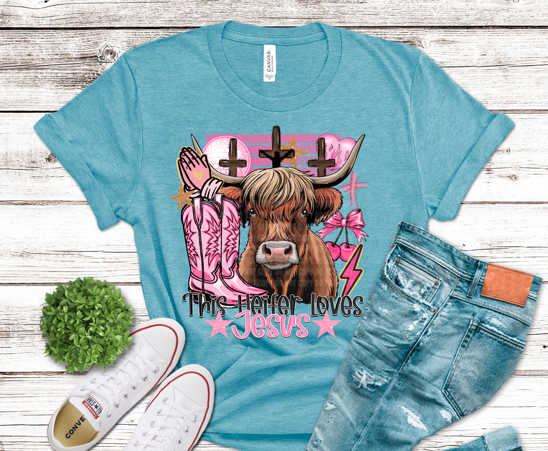 Jesus Heifer DTF Heat Transfer from Griffin Expressions. This vibrant, ready-to-press custom DTF transfer is perfect for shirts, hoodies, and more.