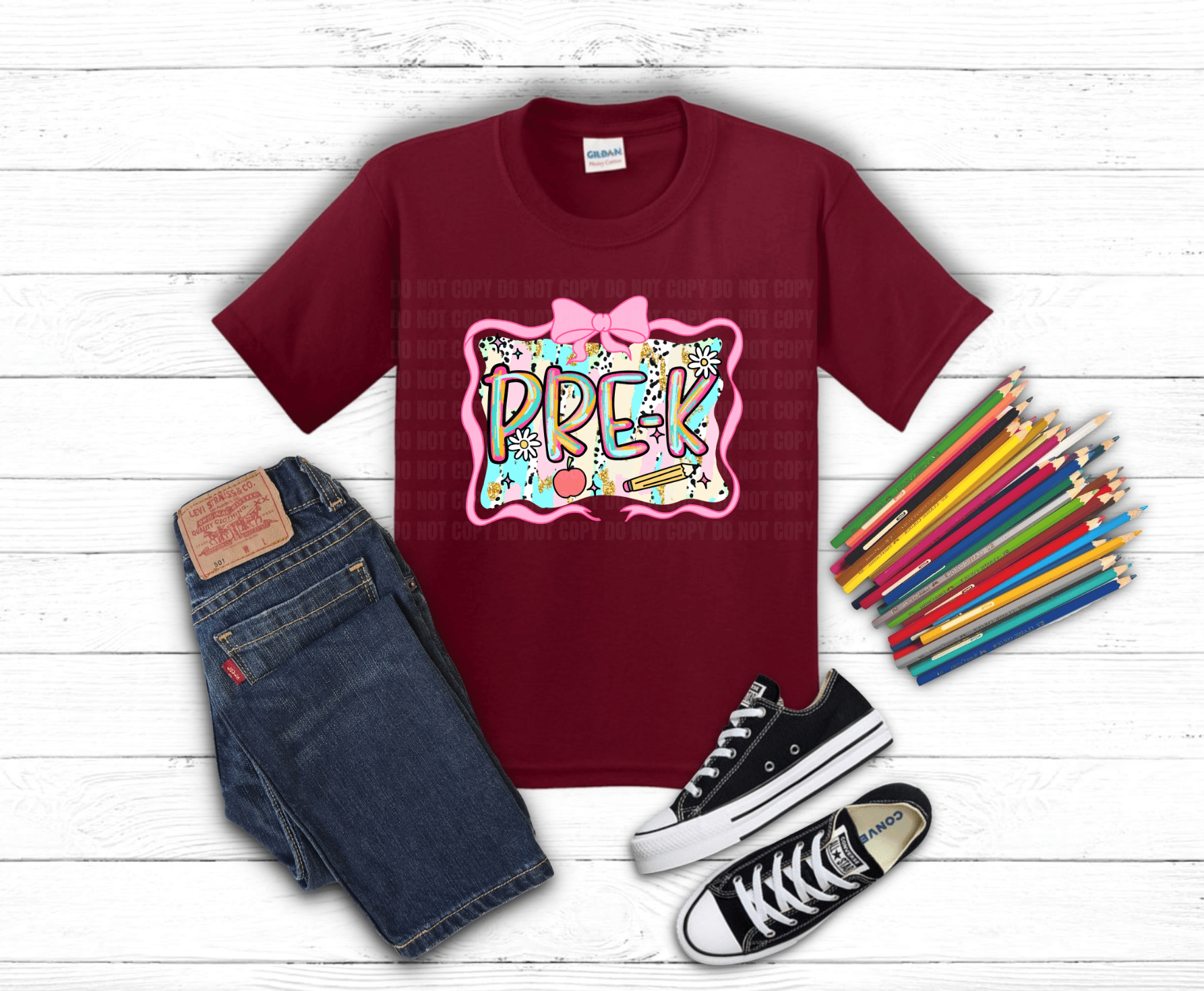 Pre K sketch by Griffin Expressions is a fun direct to film transfer that can be placed on a variety of clothing!