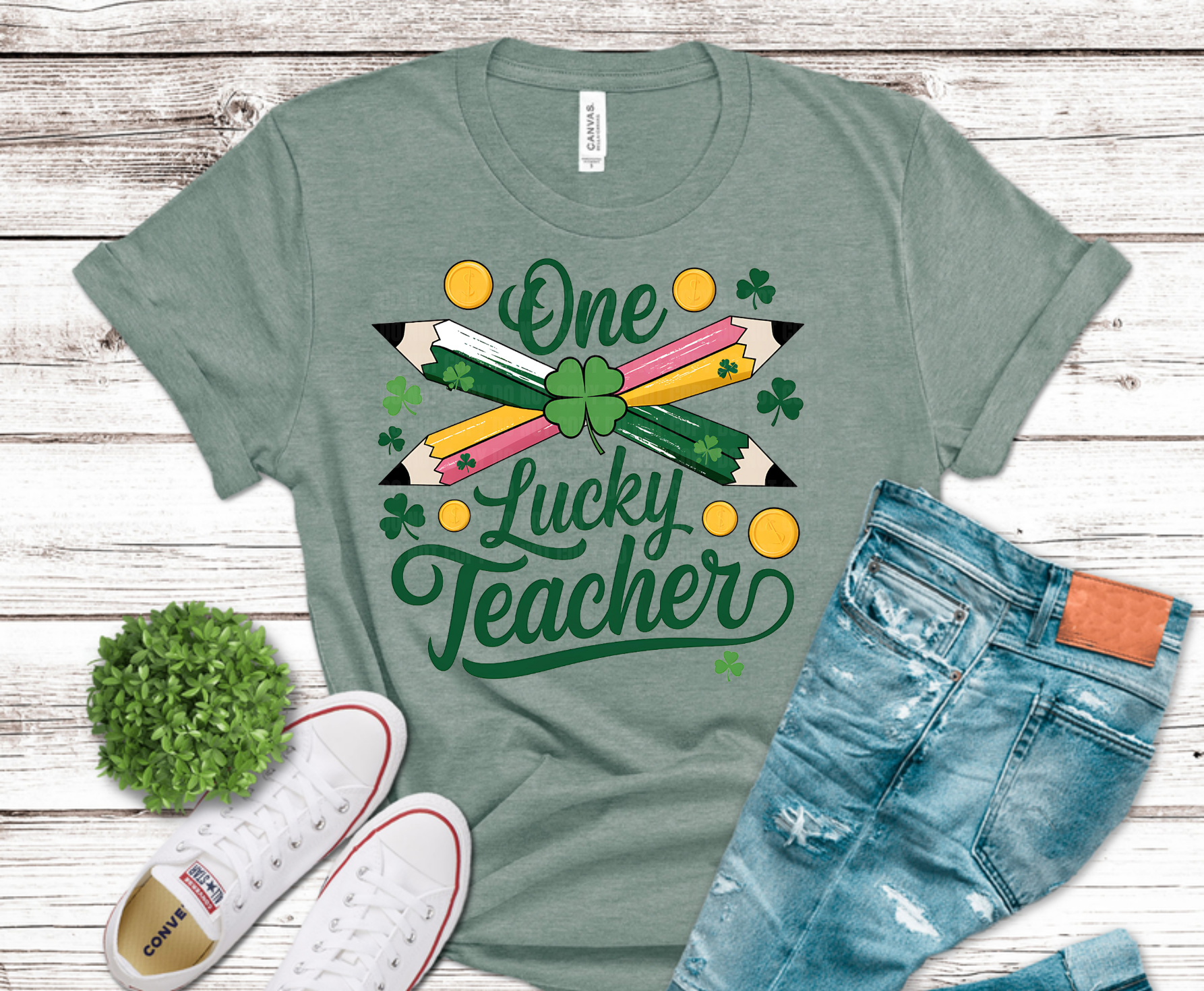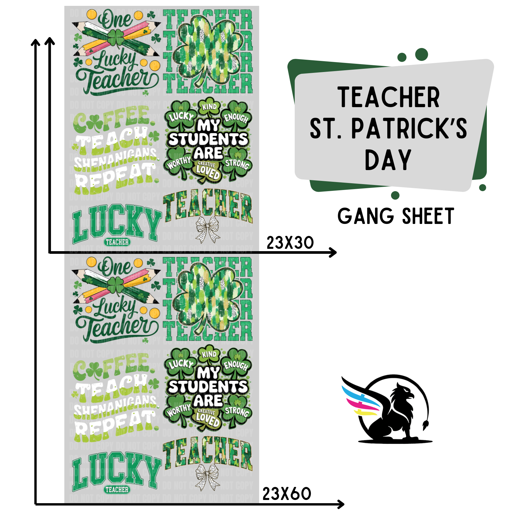 Premade DTF Transfer Gang Sheet For Graphic Tees | Teacher St. Patrick's Day