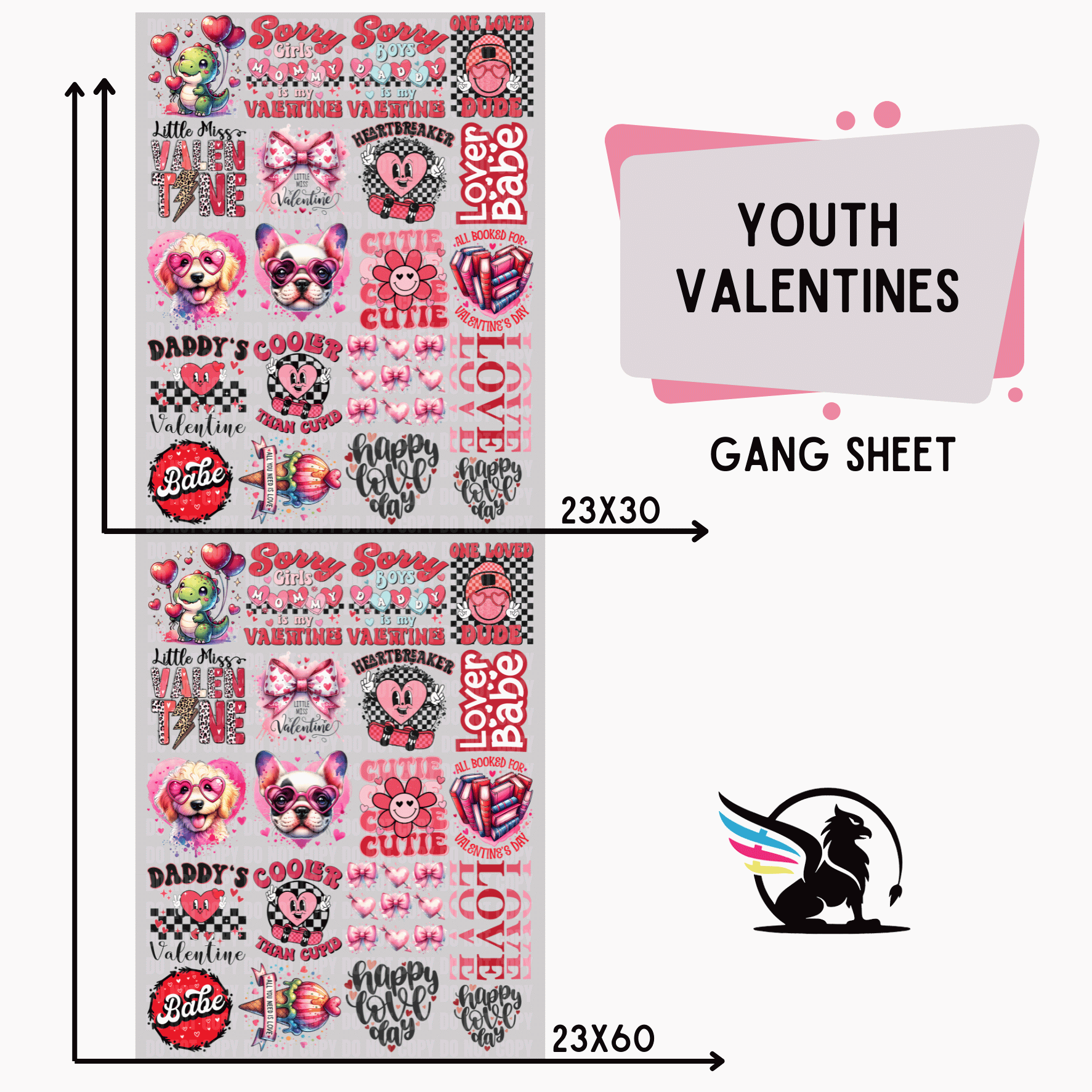 Premade DTF Transfer Gang Sheet For Graphic Tees | Youth Valentines