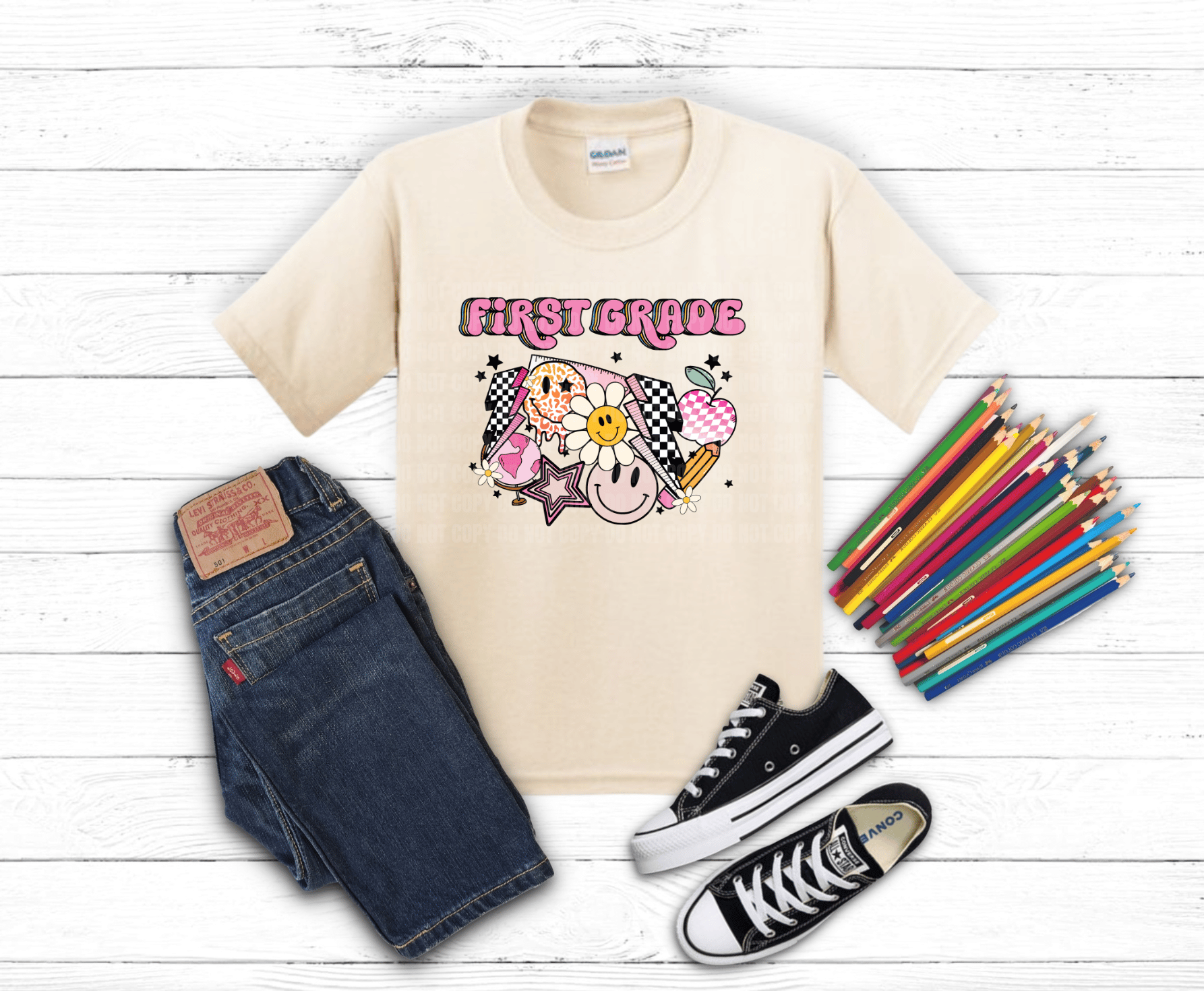 Retro 1st Grade by Griffin Expressions is a fun direct to film transfer that can be placed on a variety of clothing!