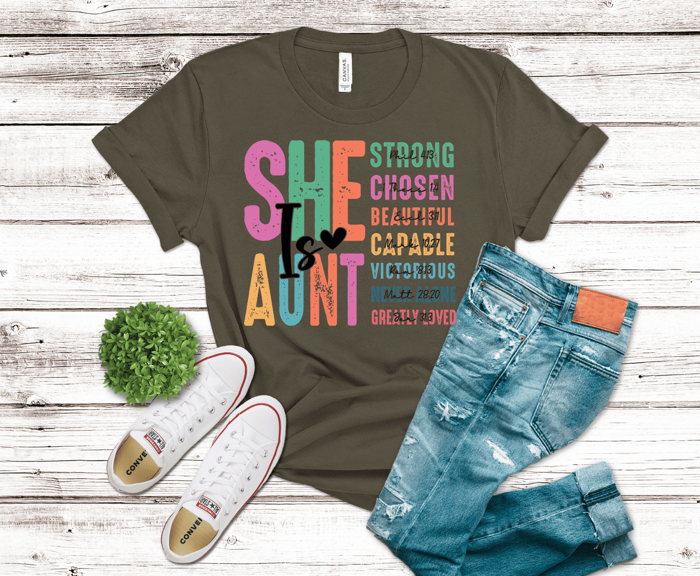 The She is Aunt design by Griffin Expressions is a fun direct to film transfer that can be placed on a variety of clothing! Take your clothes to the next level and show off your unique style!