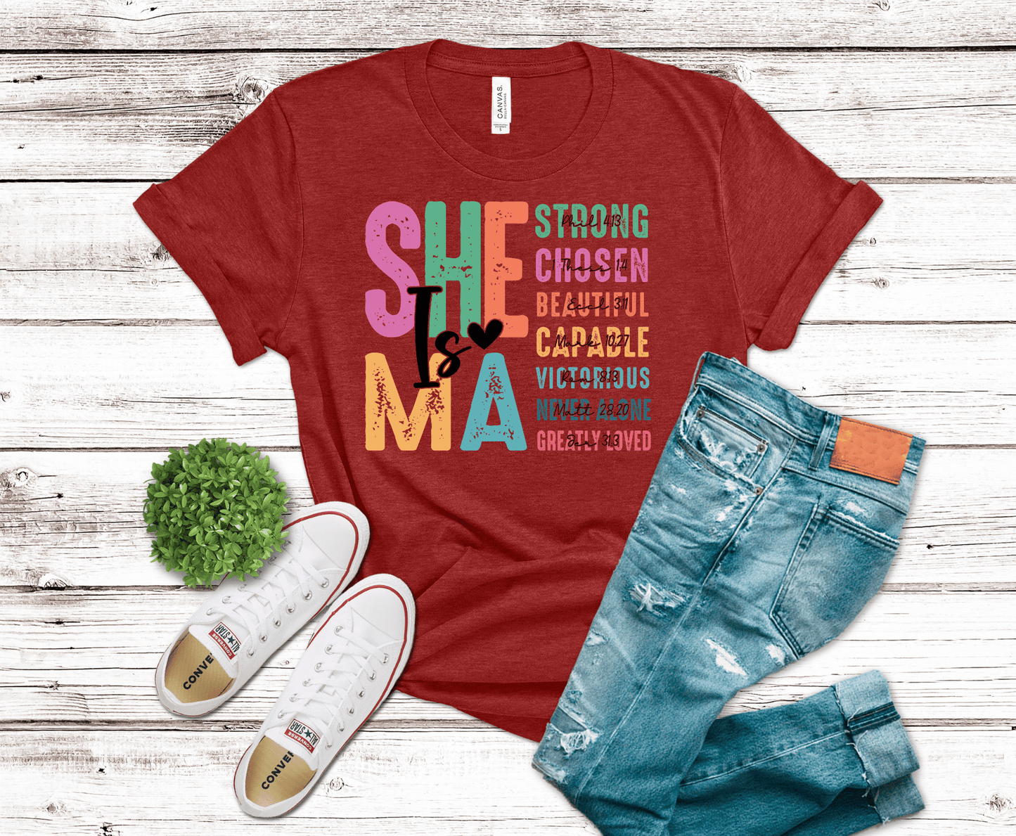 The She is Ma design by Griffin Expressions is a fun direct to film transfer that can be placed on a variety of clothing! Take your clothes to the next level and show off your unique style!