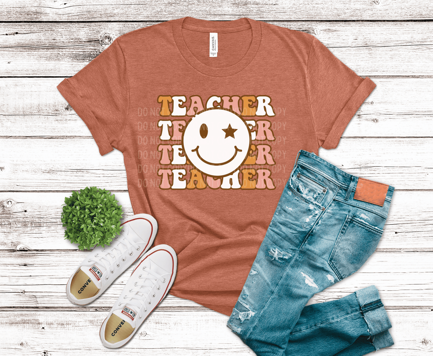 The Teacher Smiley Face design by Griffin Expressions is a fun direct to film transfer that can be placed on a variety of clothing! Take your clothes to the next level and show off your unique style!