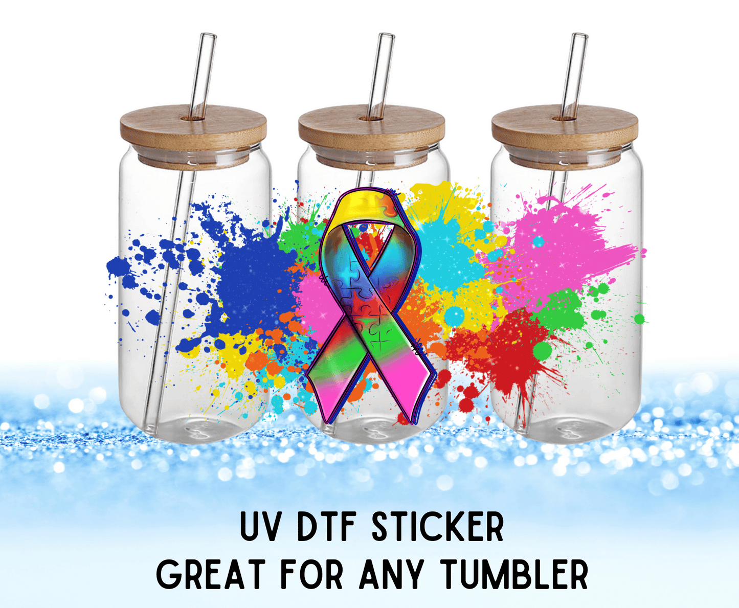 Autism Ribbon Colorful Flowers | UV DTF Wrap – Waterproof, Durable, & Vibrant Sticker