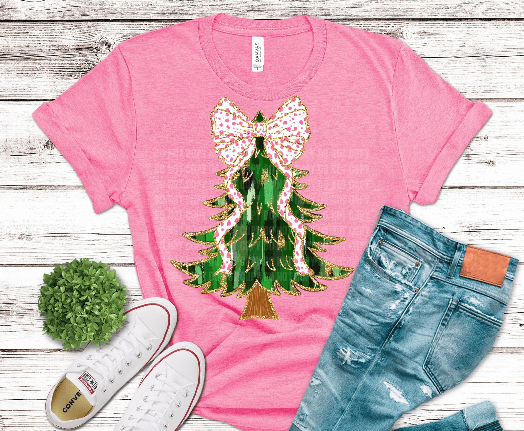 White Bow Christmas Tree DTF Heat Transfer from Griffin Expressions brings playful seasonal energy to your apparel. This vibrant, ready-to-press custom DTF transfer is perfect for shirts, hoodies, and more.
